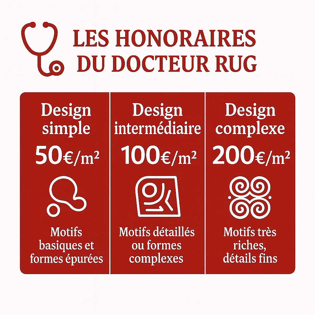 La création d’un tapis sur mesure implique bien plus que le simple design. Chaque pièce nécessite des matières premières de qualité (laine, colle, tissu, supports) qui ont un coût réel. À cela s’ajoute le temps de réalisation, car chaque tapis demande des heures de travail minutieux et de la main-d’œuvre spécialisée.